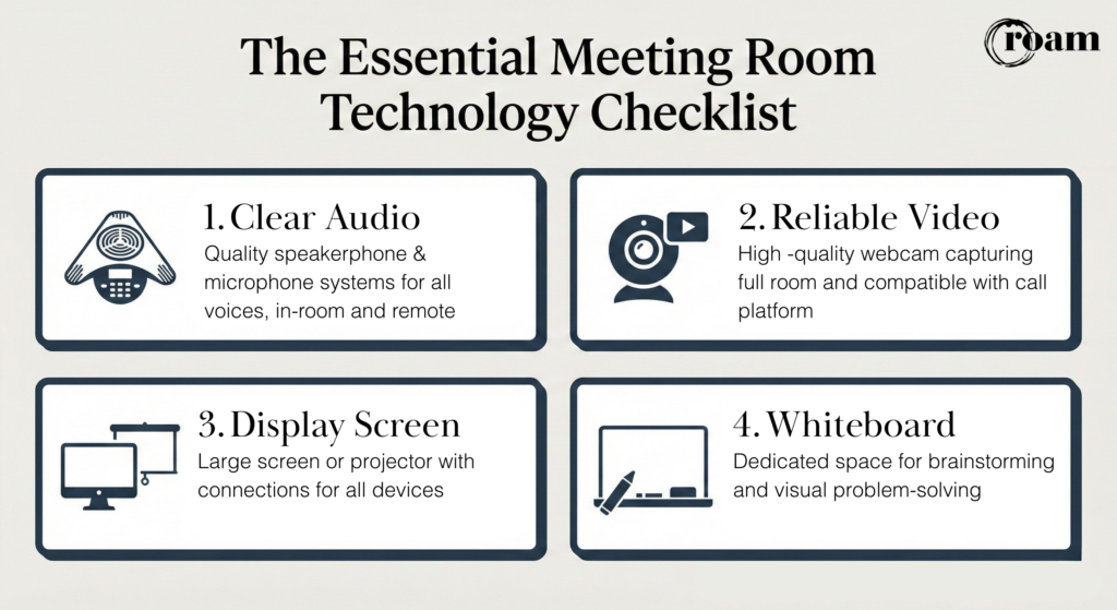 The good news? You don’t need a massive budget or an IT department on standby to run productive meetings. You just need to know what matters and, ideally, find a meeting space that already has it covered.