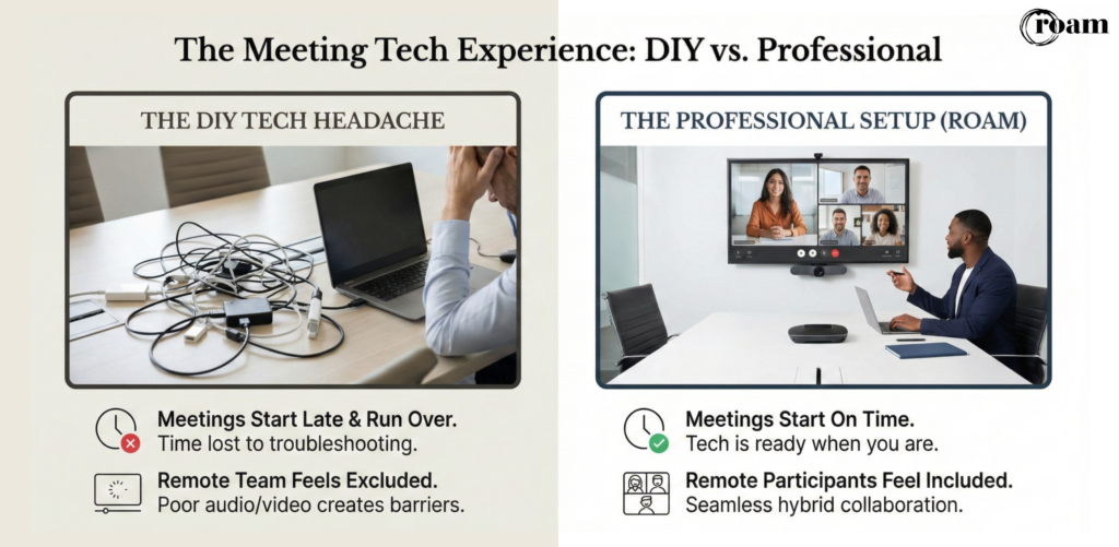 Meeting room technology isn’t about having the fanciest equipment. It’s about removing friction so your team can focus on the work, not the setup.