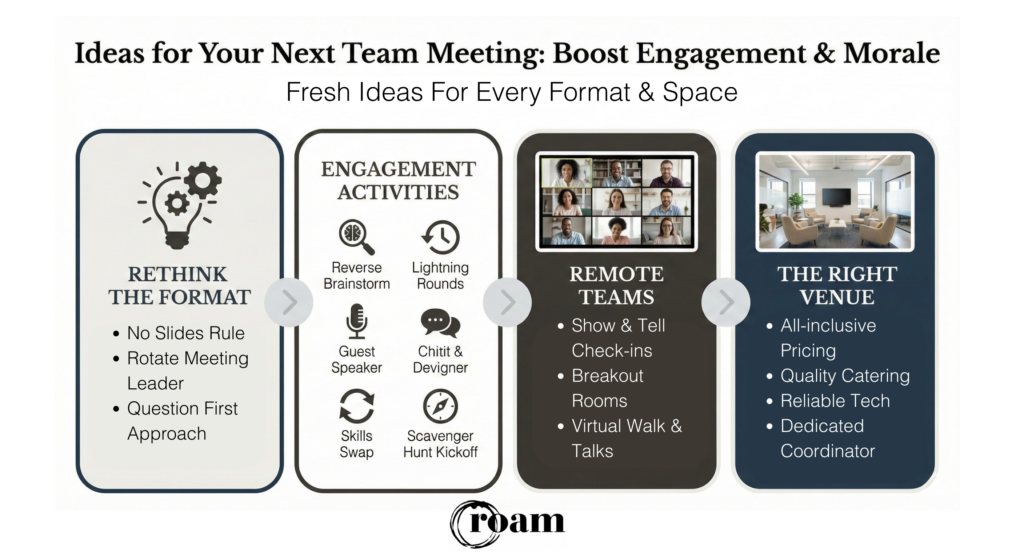 Here’s something that often gets overlooked: where you hold your team meeting shapes the entire experience.